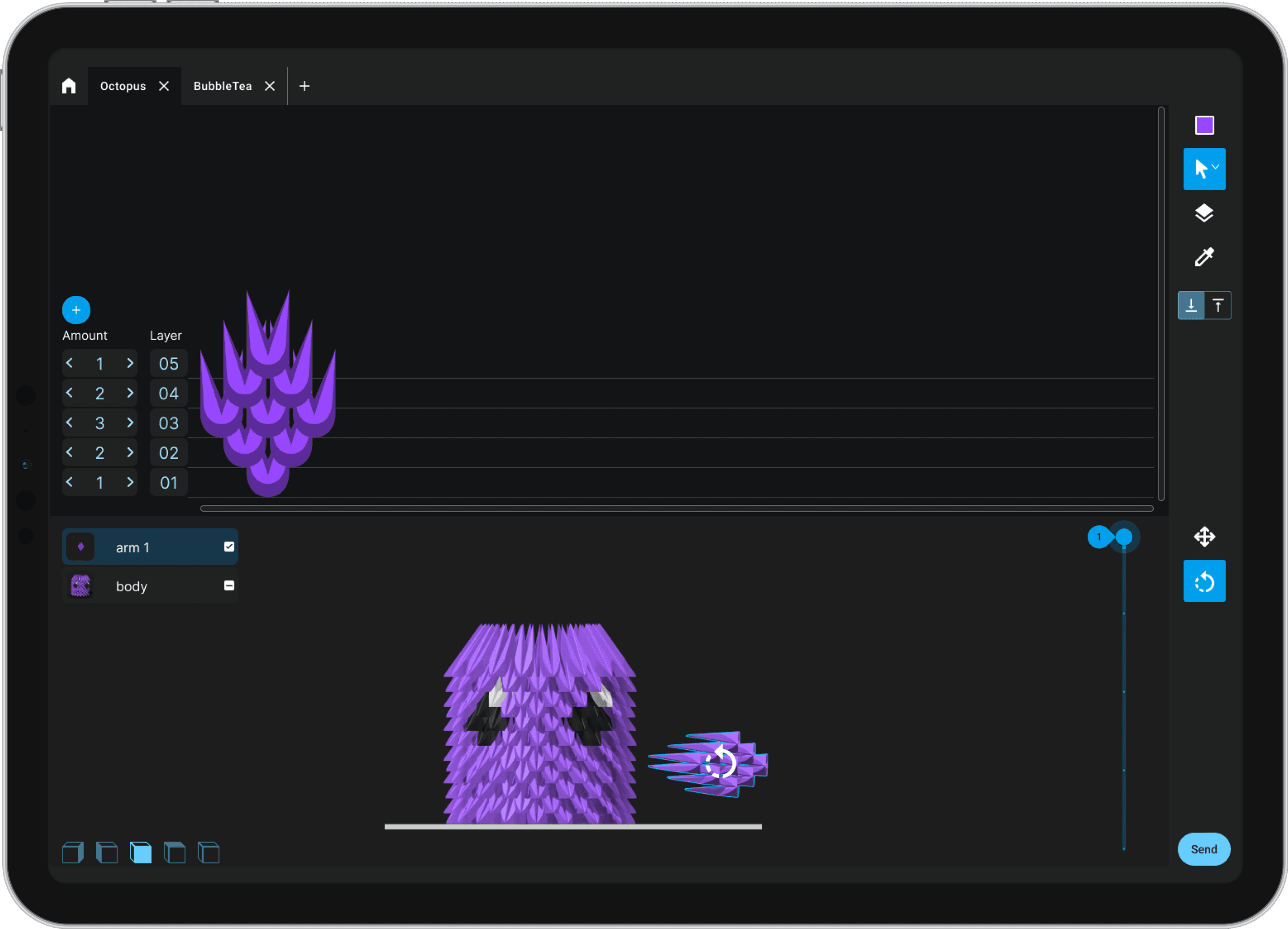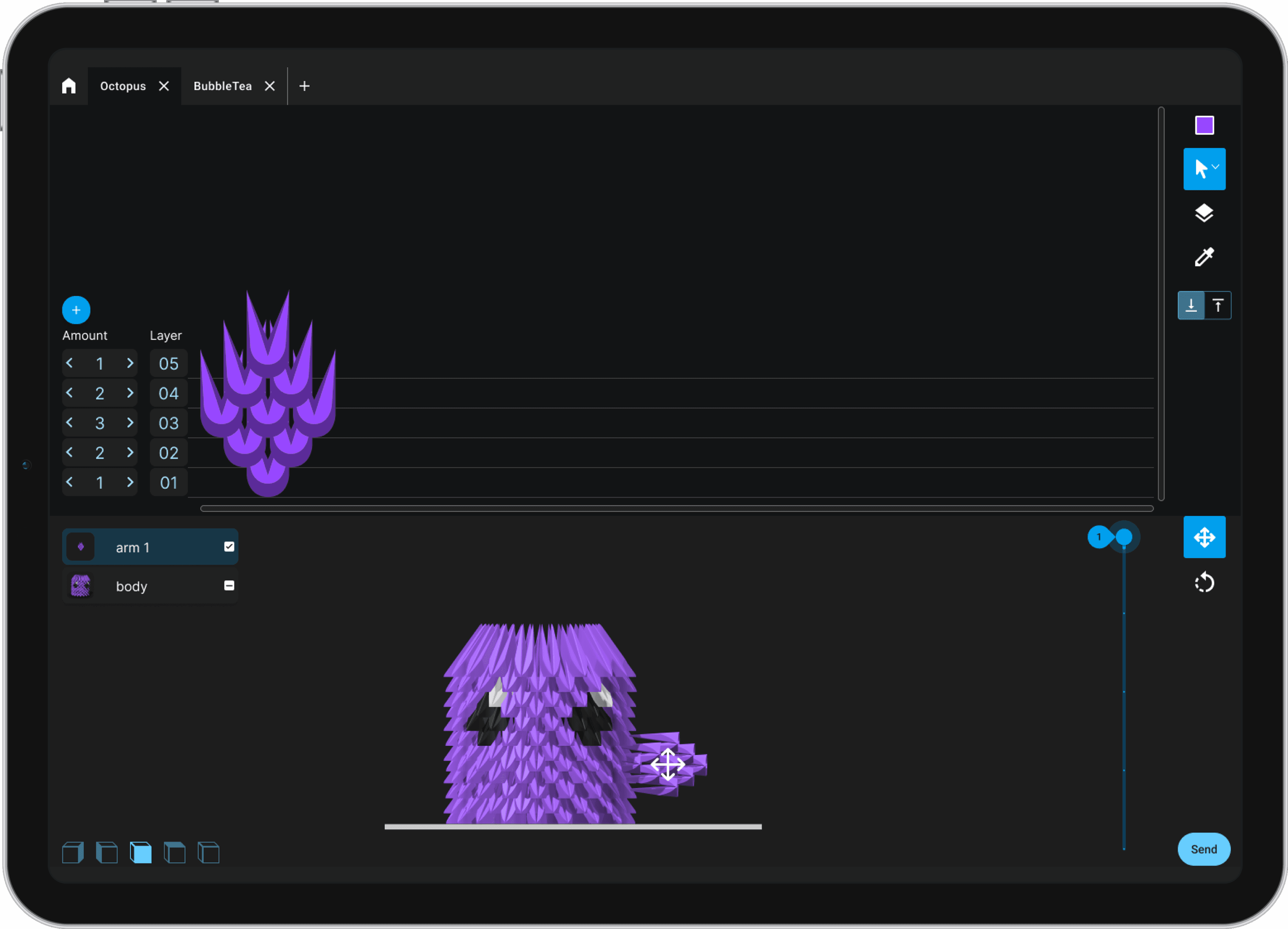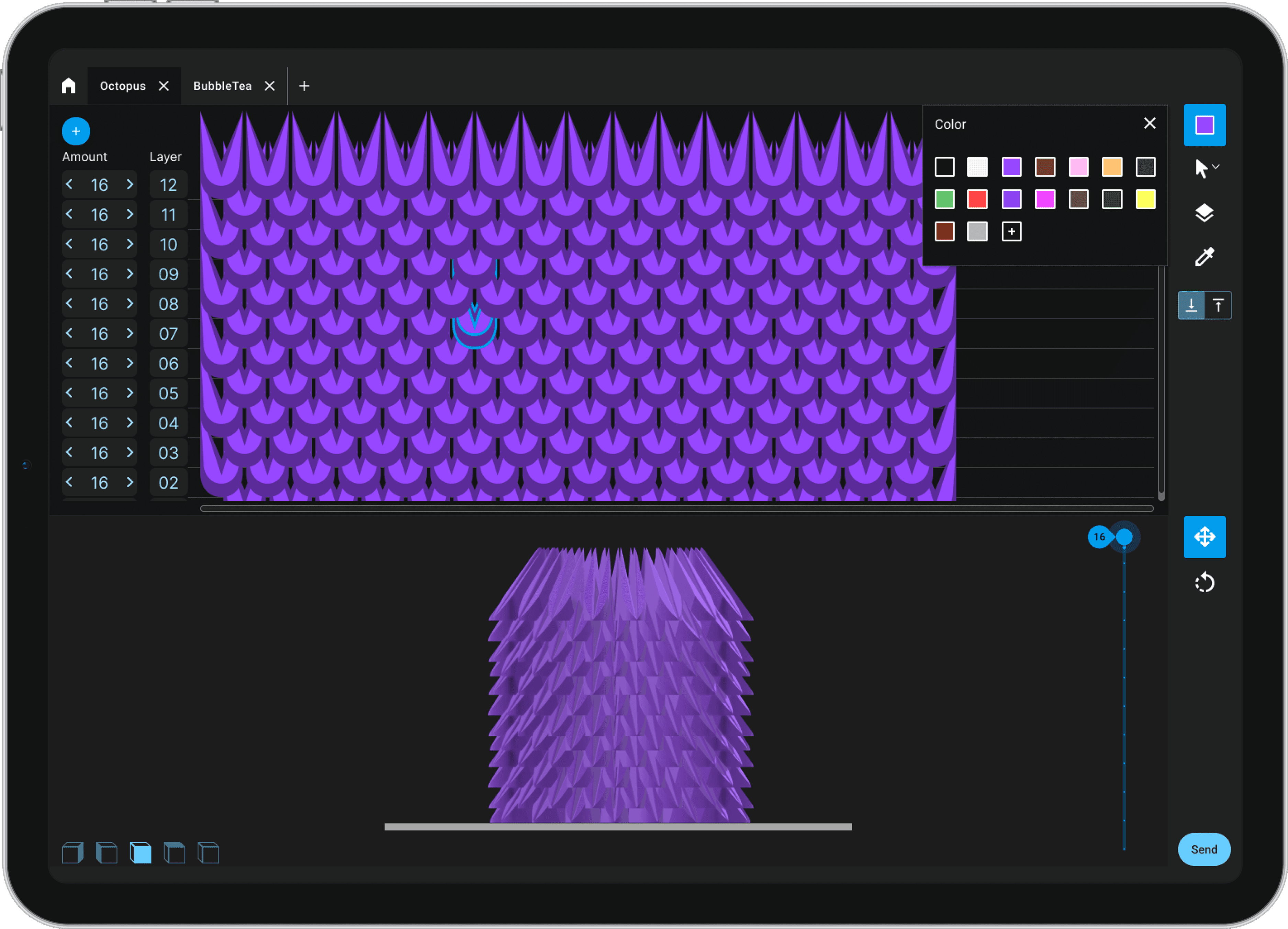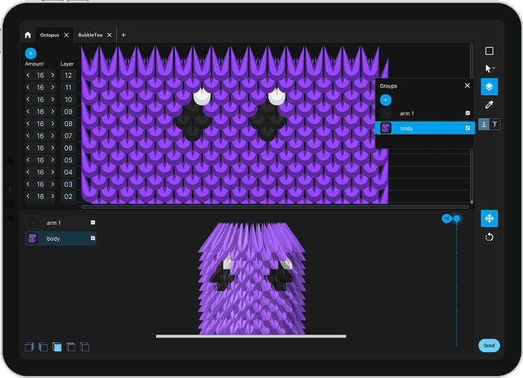 Eine Faltmaschine automatisiert das wiederholende Falten der einzelnen Module, sodass der kreative Prozess schneller und einfacher gestartet werden kann. Und eine Software, die 3D-Modelle erstellt und Informationen an den Bot sendet.